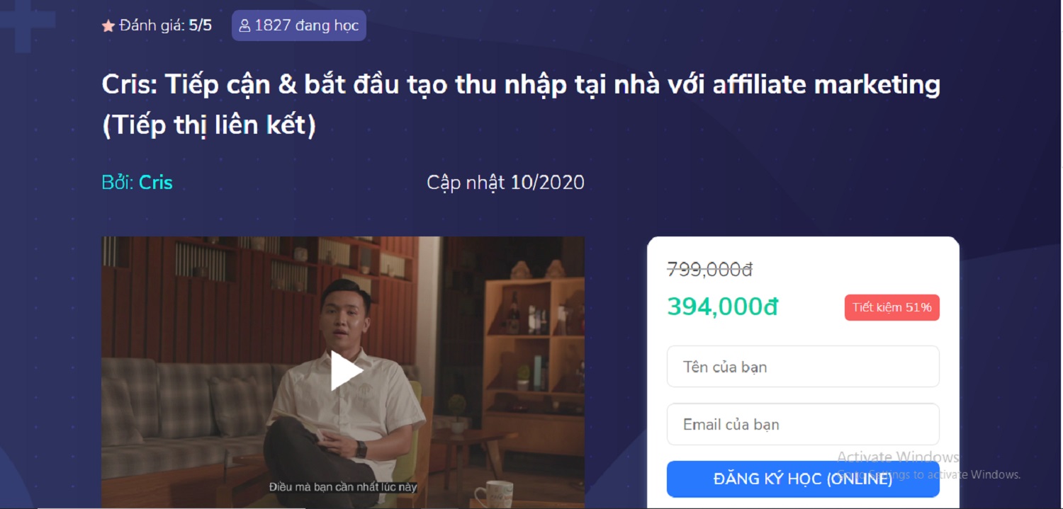 Course Affiliate Marketing này cũng do chuyên gia Cris đứng lớp, do Ktcity sản xuất.