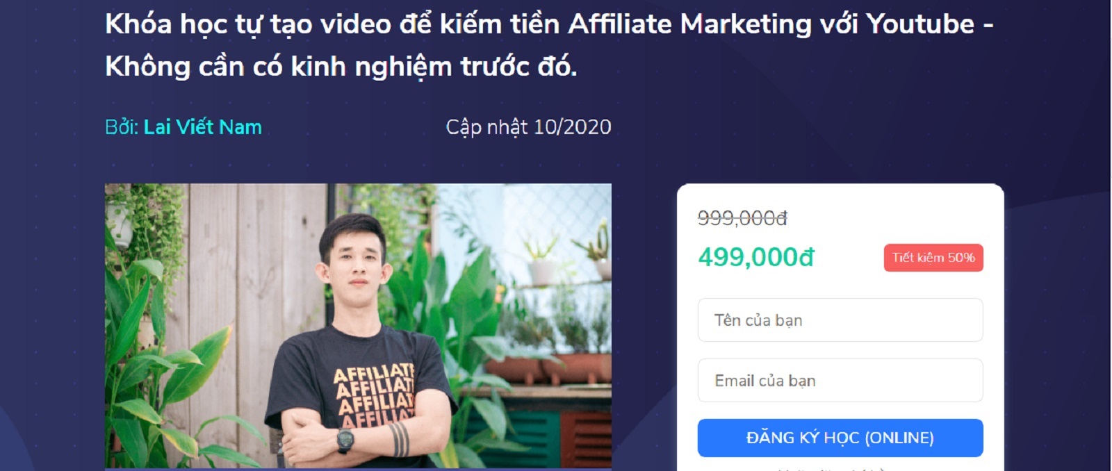 Course do chuyên gia Lai Viết Nam đứng lớp. Chi phí course chỉ dao động 499.000 đồng/khóa, là mức giá phải chăng để bạn nhanh chóng có được kiến thức chuyên sâu về thị trường tiếp thị liên kết với Youtube.
