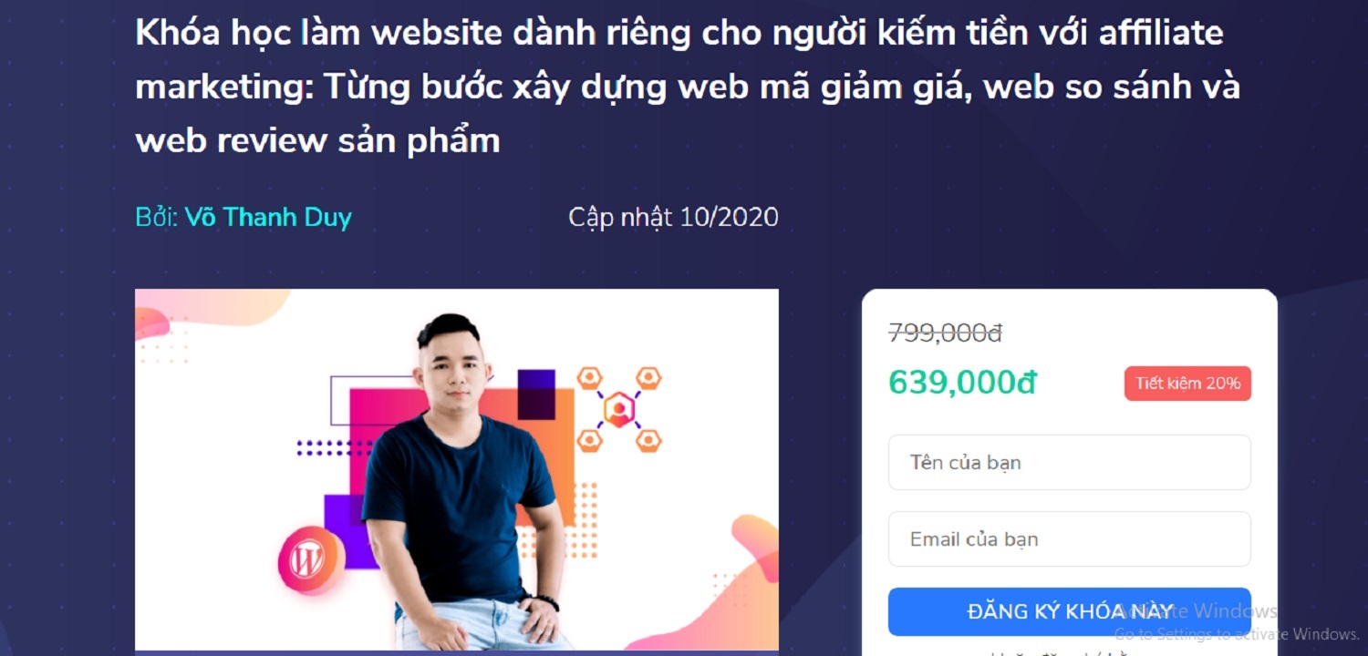 Lớp được chính chuyên gia Võ Thanh Duy trực tiếp giảng dạy. Chi phí course chỉ dao động 639.000 đồng.