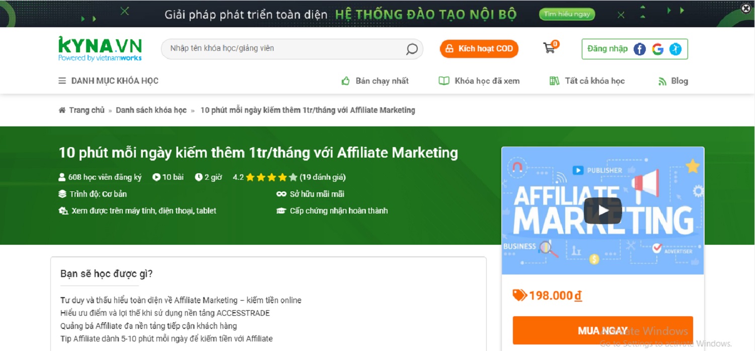 Điều này có thể thành hiện thực nếu bạn tham gia ngay lớp 10 phút mỗi ngày kiếm thêm 1 triệu với Affiliate Marketing do Kyna.vn sản xuất.