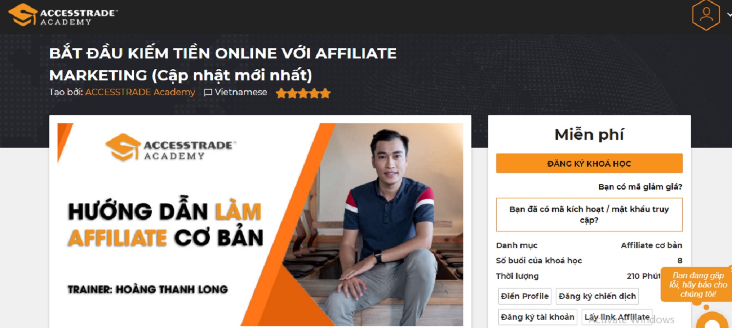 Thêm một khóa học Affiliate Marketing cơ bản uy tín, chất lượng nhất năm 2020 mà bạn có thể tham khảo. Đó chính là chương trình học bắt đầu kiếm tiền online với Affiliate Marketing do Accesstrade Academy sản xuất.